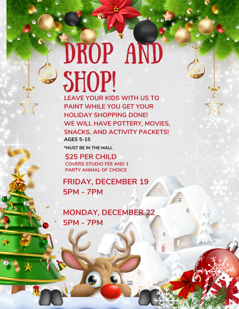 We are accepting Walk-Ins ONLY (as space allows). We stop taking painters 1 hour before we close. If there are no customers, we may close the store 15 minutes early without warning. Your pottery will take UP TO 2 WEEKS to get back to you. WE DO NOT SHIP POTTERY! Thank you for your understanding as we respect each other to be creative together! To-Go Kits are still available to pick up and paint at home!