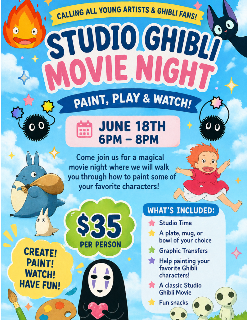 We are accepting Walk-Ins ONLY (as space allows). We stop taking painters 1 hour before we close. If there are no customers, we may close the store 15 minutes early without warning. Your pottery will take UP TO 2 WEEKS to get back to you. WE DO NOT SHIP POTTERY! Thank you for your understanding as we respect each other to be creative together! To-Go Kits are still available to pick up and paint at home!